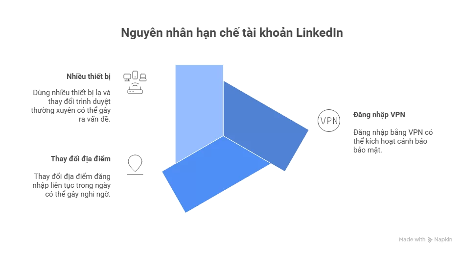 Dù một số công cụ quảng bá “giống người thật”, dữ liệu hành vi và dấu vết kỹ thuật vẫn có thể bị LinkedIn phát hiện. Đây là nhóm nguyên nhân dễ dẫn tới hạn chế nặng, thậm chí khóa lâu dài.