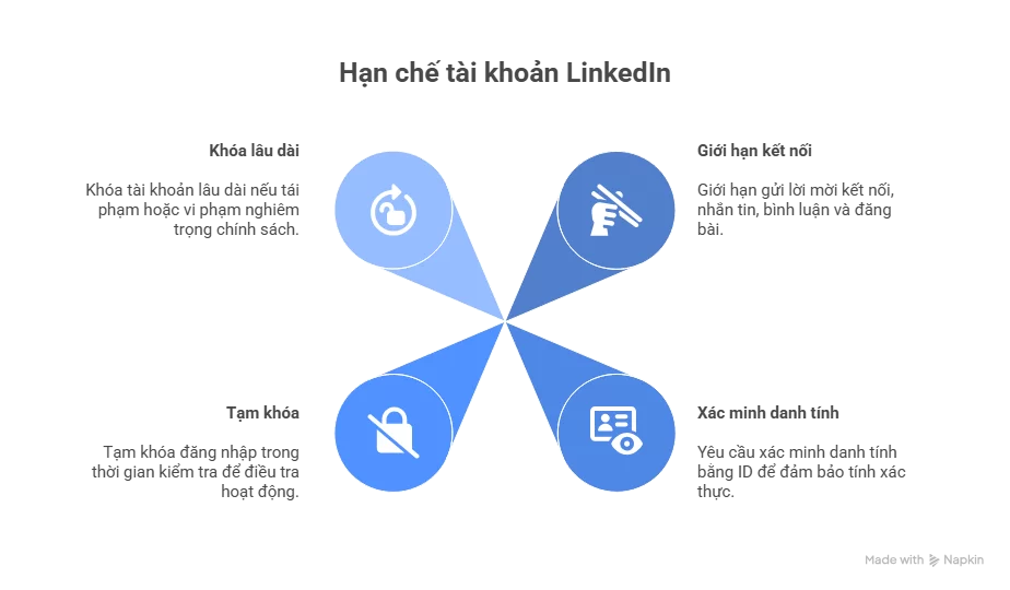LinkedIn có thể yêu cầu xác minh danh tính hoặc chặn tài khoản để bảo vệ người dùng.